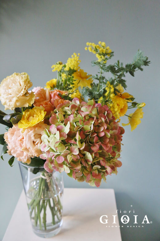 ・紫陽花・バラ・ミモザ・トルコキキョウ・ラナンキュラス